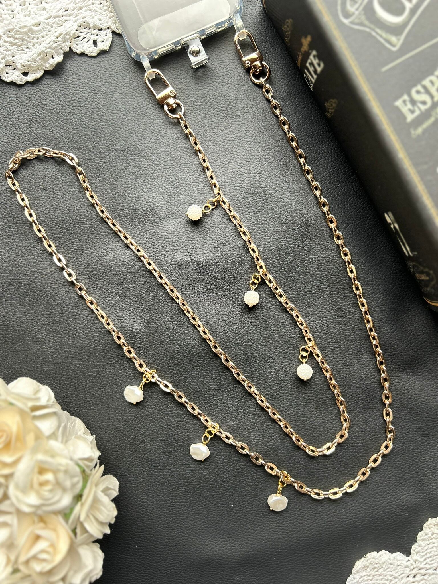 着けるだけ!おしゃれが叶う! ☆ジュエリースマホストラップ☆ 【2way・ゴールド・パール】 ストラップホルダー・お手入れクロス付
